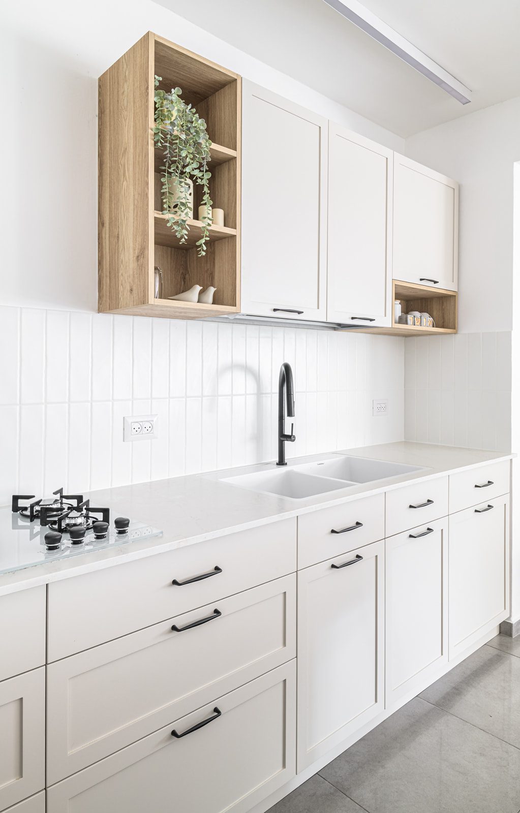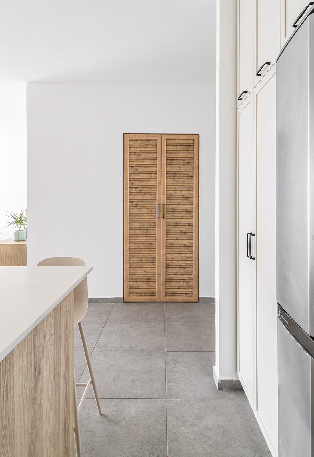 3- בוחרת בריהוט בגוון נס קפה (לא מוסיפה עוד אפור) למשל המטבח והספריה בתמונות למטה